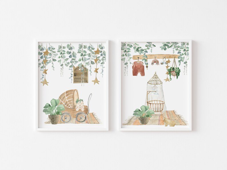 Baby PRINTABLE WALL ART, Set of 2, Nursery Wall Art, Digital Download, Shower Gift, prints