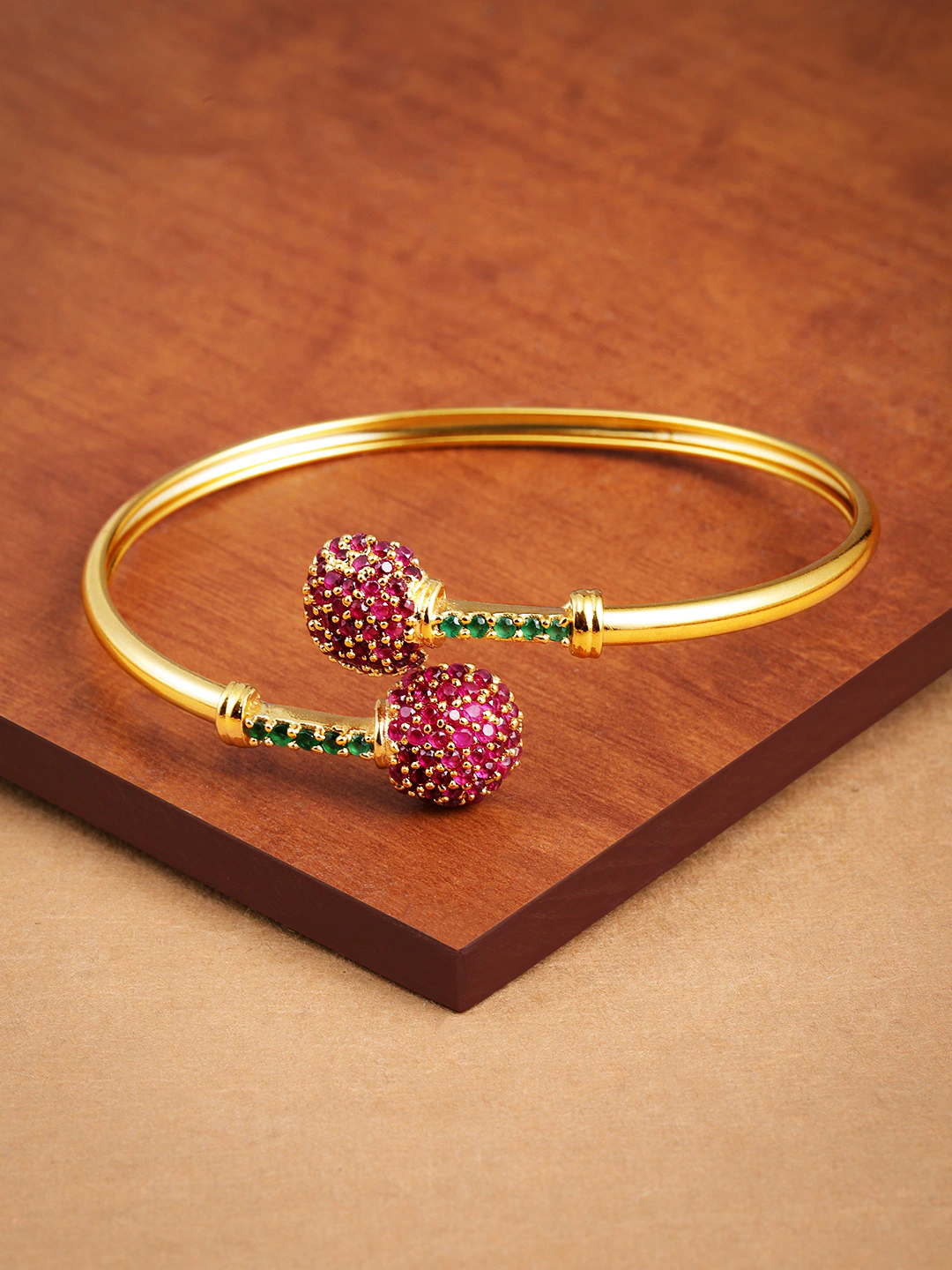 Gold-Toned and pink kada braceletMaterial and stone type: Brass with cubic zirconia